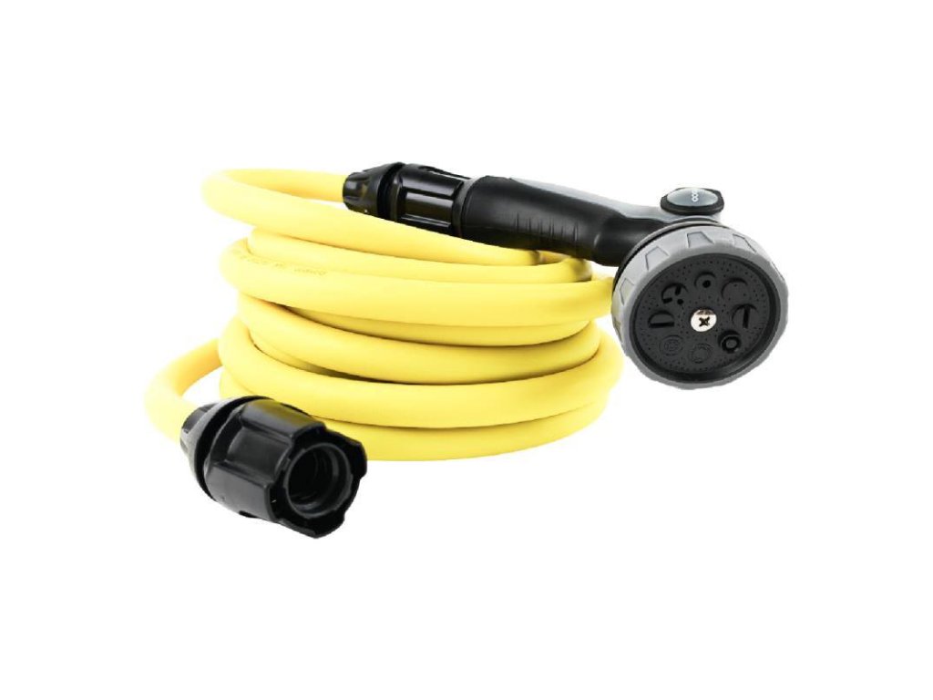 - set připravený k okamžitému použití - včetně stříkací pistole s 8 funkcemi a přípojky na vodu