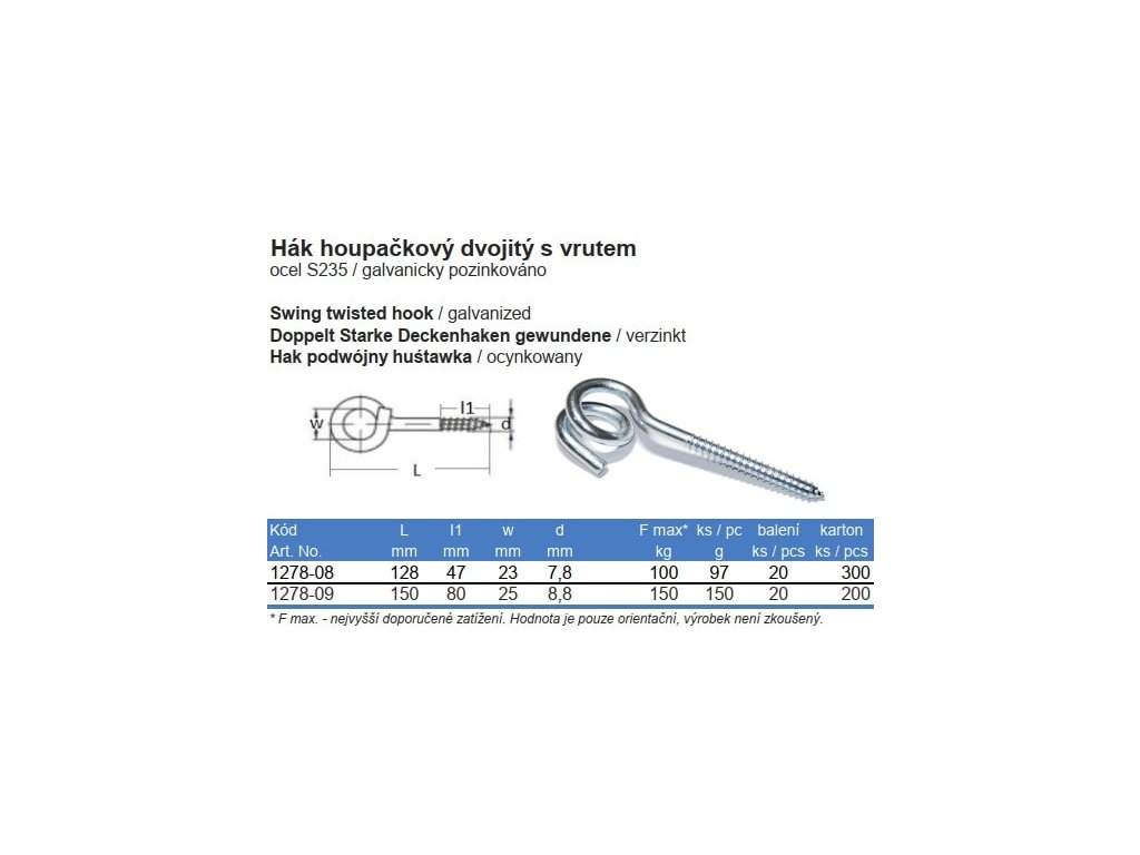 Hák houpačkový, dvojitý s vrutem