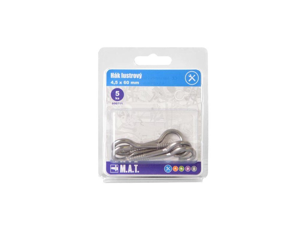 délka: 60 mm 5 ks Hák lustrový slouží k upevnění lustru do různých materiálů.Doplňkové parametry