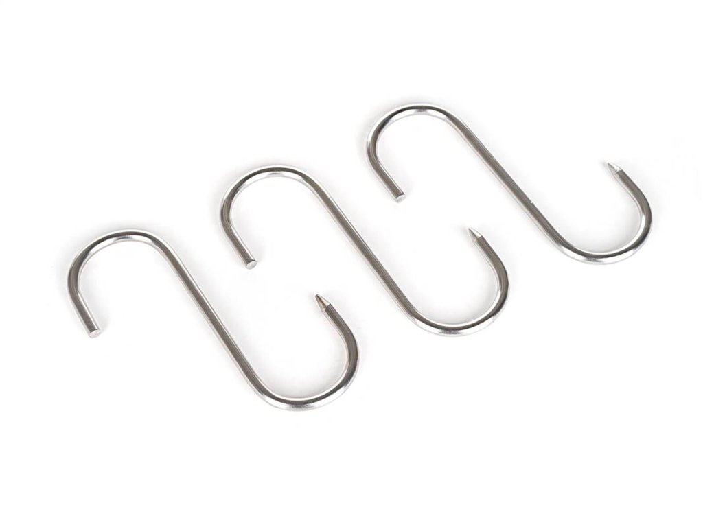 Hák řeznický 16 x 9,1 cm, pr. 6 mm, nerez (3 ks). rozměry háčku: 16 x 9,1 cm síla drátu: 6 mm materiál: nerez balení: 3 ks Háčky AKCENT jsou vyrobené z nerezové oceli. Nerezové háčky s jednou špičkou slouží k zavěšení masa v udírně nebo k vyvěšení masa / uzenin. Jsou vyrobeny z pevného nerezového drátu a jistě si je oblíbí každý milovník uzení. Háček je vhodný pro navěšovací trubku o průměru do 38 mm.Doplňkové parametry
