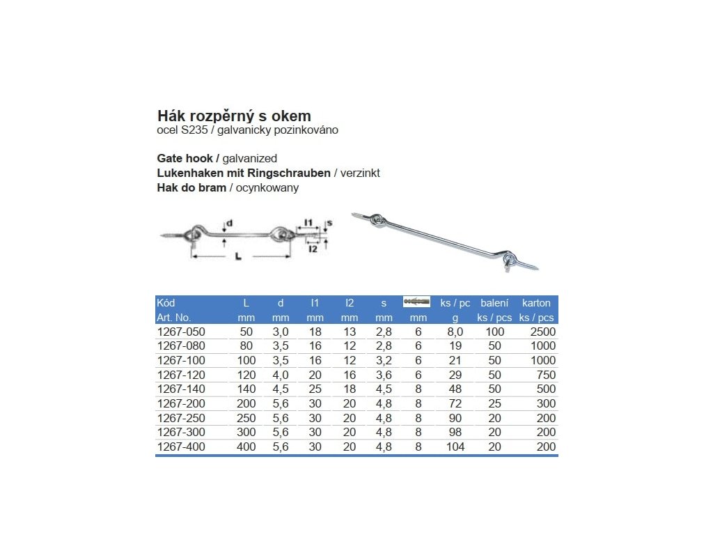 Velikost: | 400x5,6mm, 300x5,6mm, 250x5,6mm, 200x5,6mm, 140x4,5mm, 120x4,0mm, 100x3,5mm, 80x3,5mm, 50x3,0mm |