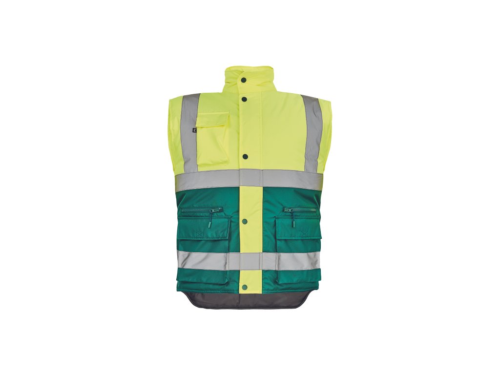 • pánská zateplená HI-VIS vesta s reflexními pruhy přes ramena a v bocích • kapuce skrytá v límci • zapínání na zip kryté légou se zapínáním na druky • 2 přední multifunkční kapsy s klopou a zapínáním na zip • 1 náprsní kapsa s klopouDoplňkové parametry