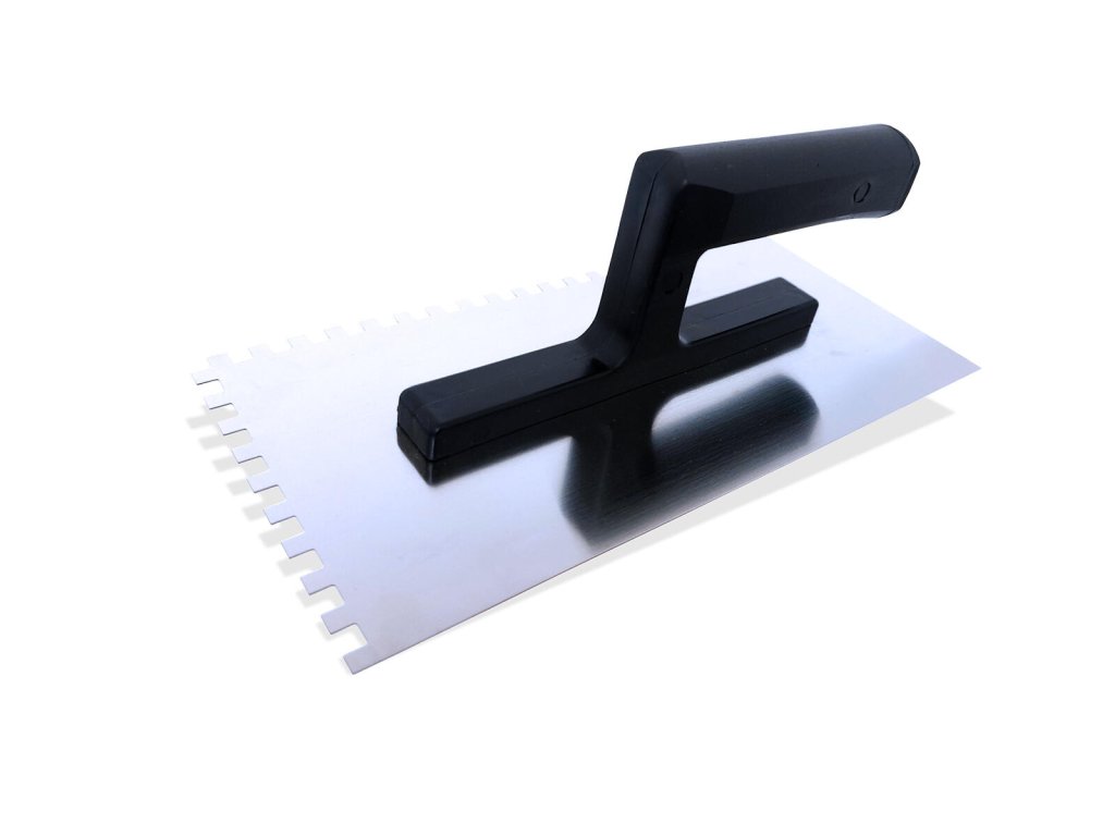 Hladítko nerez zuby 8, 270 x 125 mm. rozměry: 270 x 125 mm materiál: nerez zuby 8 x 8 mm Hladítko nerez HN9 125x270-E8. Hladítko je idealní nástroj k vyhlazování a nanášení omítek, lepidel, malty a dalších materiálů.Doplňkové parametry