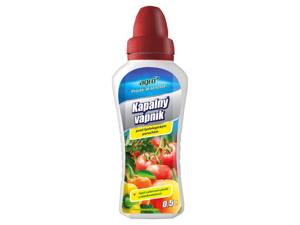 Hnojivo AGRO kapalný vápník 0,5 l. objem: 0,5 l AGRO Kapalný vápník je speciální jednosložkové hnojivo určené pro všechny rostliny pěstované na zahradě ve volné půdě i v pěstebních nádobách, které trpí zjevným nedostatkem vápníku projevující se fyziologickou poruchou plodů - suchou hnilobou, černáním pupků rajčat, skvrnitostí apod. Použití hnojiva: Při nedostatku vápníku: Aplikace se provádí postřikem na list v dávce 20 ml/1 l vody – vystačí na cca 50 m2. Ošetření je potřeba vícekrát opakovat v deseti - až čtrnáctidenních intervalech. Preventivní doplňková výživa postřikem: Postřikem na nadzemní části rostlin, hlavně je potřeba docílit ošetření plodu. POZOR: Hnojivo má herbicidní účinek – při porušení zásad aplikace, při předávkování apod. hrozí riziko nevratného poškození rostlin. Používejte přípravky na ochranu rostlin bezpečně. Před použitím si vždy přečtěte označení a informace o přípravku.Doplňkové parametry