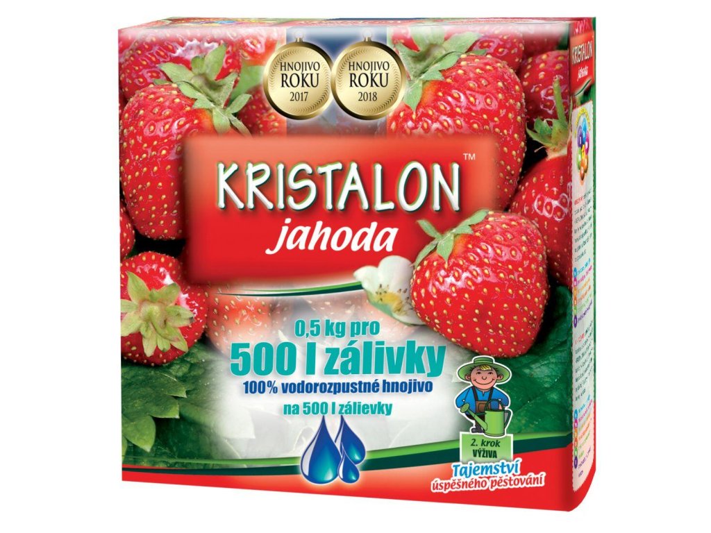 Hnojivo zajistí rychlejší počáteční růst díky přímé absorpci fosforu, rychlejší nástup produkčního období. Vhodné pro všechny druhy jahod pěstovaných ve volné půdě i v nádobách. Aplikace zálivkou i postřikem 1 x týdně. Dávkování: 1 odměrka (10 g) hnojiva do 10 l vody (pro cca 5 m2 plochy) Balení 0,5 kg pro 500 l zálivky. - složení: krystalické ES hnojivo, rychle účinné, 100 % vodorozpustné, poměr živin N-P-K (12-12-36) + mikroprvky B, Mo, Fe, Cu, Mn, Zn Používejte přípravky na ochranu rostlin bezpečně. Před použitím si vždy přečtěte označení a informace o přípravku.Doplňkové parametry