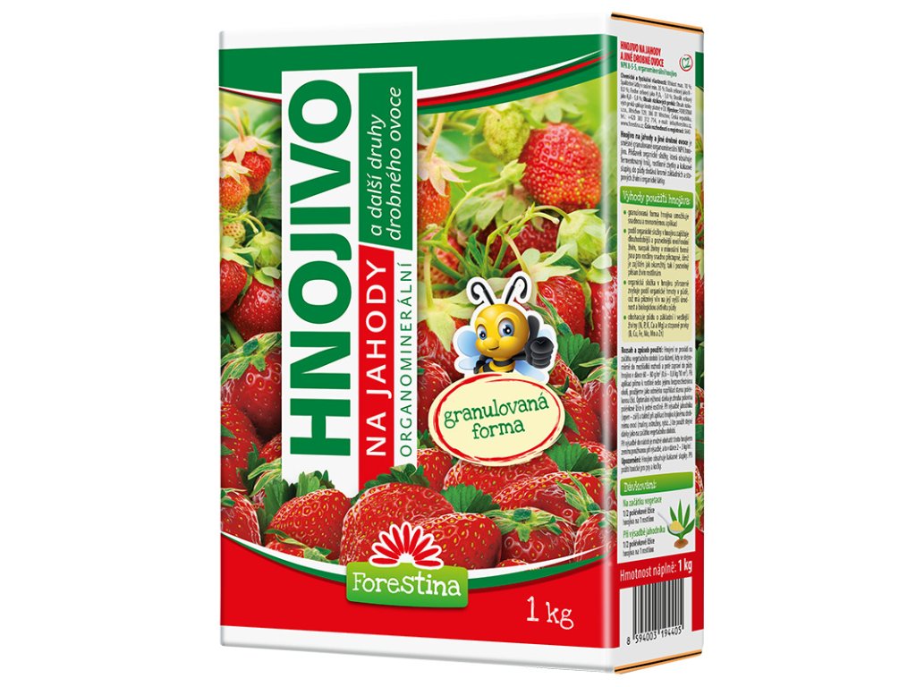 Hnojivo na jahody a jiné drobné ovoce je směsné granulované organominerální NPK hnojivo. Přídavek organické složky, která obsahuje fermentovaný hnůj, rostlinné zbytky a kakaové slupky, do půdy dodává kromě základních a stopových živin i organické látky.
