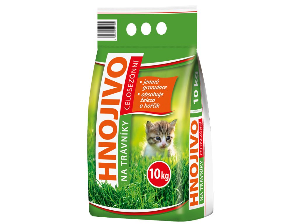 Granulované hnojivo na trávníky obsahující základní živiny dusík, fosfor, draslík ve vyváženém poměru. Současně obsahuje hořčík, síru a železo.