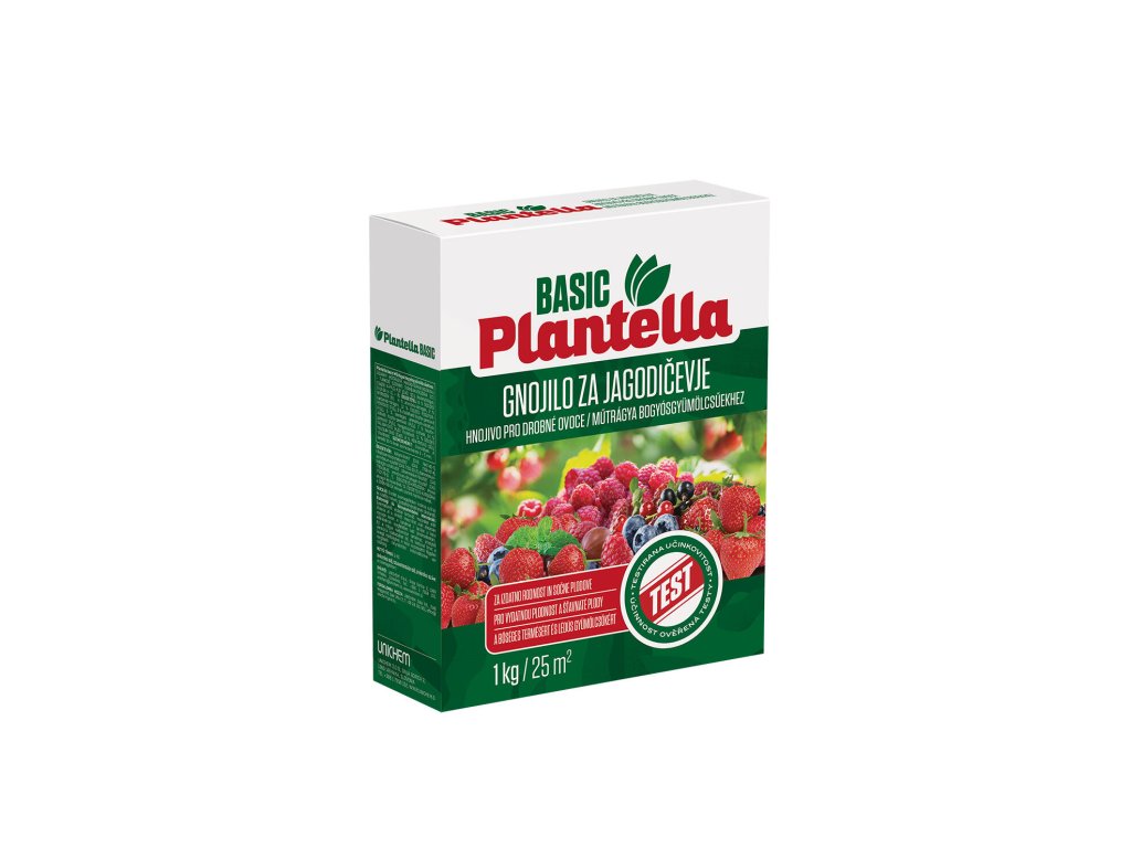 Hnojivo pro drobné ovoce 1 kg, Plantella Basic. hmotnost: 1 kg Mix pro jahody pro zdravý růst a hojnější úrodu. Pro správné výživy rostlin. Přizpůsobené složky hlavních živin NPK a stopových prvků. Plantella Basic ve formě krystalů, což umožňuje rychlé a snadné ovládání a jednoduché dávkování. Přizpůsobeno je všem požadavkům drobného ovoce. Může být použito na výsadbu, ale i pro přihnojování v době vegetace. Hnojivo má příznivý vliv na růst, kvetení, plodnost a produkci cukru. Použití: - ideálně hnojit třikrát do roka, nejprve na počátku kvetení (duben), podruhé během vegetace a potřetí, týden po sklizni (každá s 1 kg do 20 m2) - hnojivo je třeba dávkovat rovnoměrně - doporučujeme mírné míchání hnojiv a půdy a zalít vodou kalendářní využití: březen - červen Používejte přípravky na ochranu rostlin bezpečně. Před použitím si vždy přečtěte označení a informace o přípravku.Doplňkové parametry