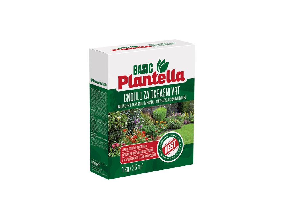 Hnojivo pro okrasnou zahradu 1 kg, Plantella Basic. hmotnost: 1 kg Mix pro rychlejší růst a zdravě vypadající rostliny. Speciální minerální hnojivo - rychlé a snadné ovládání a jednoduché dávkování. Ve formě ve vodě rozpustných krystalů pro rychlý provoz. Pro správné výživy rostlin. 1 kg stačí na 200 l. Přizpůsobené složky hlavních živin NPK a stopových prvků. Plantella Basic pro okrasné rostliny je určeno pro okrasné rostliny, např. okrasné keře a dřeviny, je vhodné i pro jiné venkovní rostliny, živé ploty, hřbitovní květiny, květiny v oknech a balkónové rostliny. Použití: - podporuje bohatý růst a bohatou tvorbu květů - doporučené dávkování 1 odměrka hnojiva (50 g) do 10 litrů vody na asi 5 m2 - hnojivo se rovnoměrně rozhodí na povrch půdy a zapracuje se Hnojí se 5 x za sezónu: - při výsadbě na začátku kvetení - první přihnojení duben - druhé přihnojení květen - třetí přihnojení červen - čtvrté přihnojení srpen kalendářní využití: březen - září Používejte přípravky na ochranu rostlin bezpečně. Před použitím si vždy přečtěte označení a informace o přípravku.Doplňkové parametry