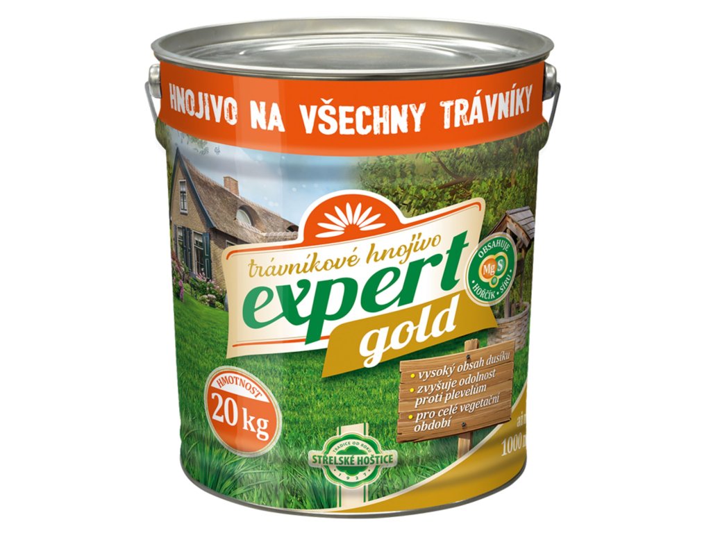 EXPERT Gold je prémiové trávníkové hnojivo, které svým složením splňuje požadavky trav na výživu v růstovém období. Část dusíku je přítomna v rychleji působící nitrátové formě, čímž je zaručen rychlý účinek. Hnojivo svým složením zajišťuje zdravý vzhled a tmavě zelenou barvu travního porostu. Zároveň podporuje odnožování trav, což vede k tvorbě hustého trávního porostu a má rovněž velký význam při regeneraci poškozených trávních porostů.