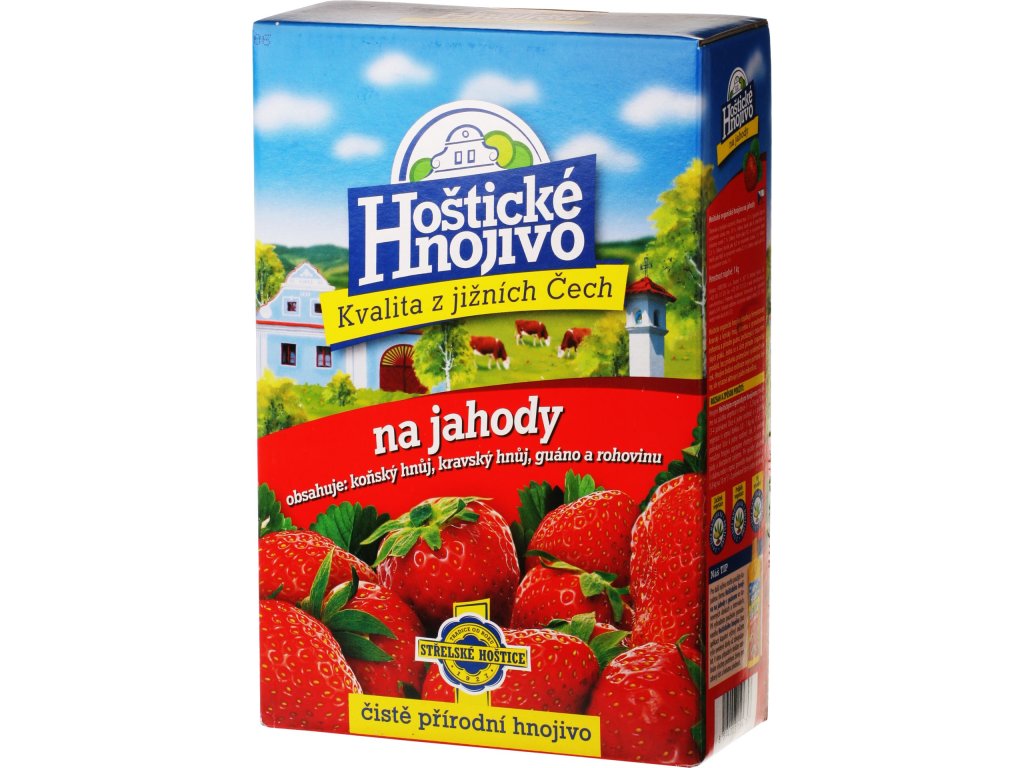 Hoštické organické hnojivo na jahody obsahuje fermentovaný kravský a koňský hnůj, drcenou a granulovanou rohovinu a přírodní guáno, pocházející z trusu mořských ptáků. Jedná se o čistě přírodní produkt, bez přídavku průmyslově vyráběných složek. Hnojivo dodává nejen potřebné živiny, ale výrazně aktivuje i půdní mikroflóru.