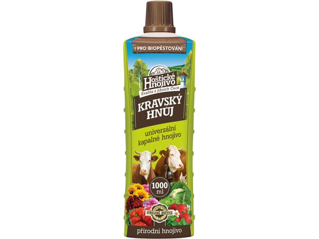 Hoštické tekuté kravský hnůj je čistě přírodní přípravek, vyrobený z extraktu kravského hnoje, vinázy (vedlejší produkt při zpracování melasy) a přírodního fosfátu. Obsahuje organické látky, základní živiny i stopové prvky v podobě přírodní složky surovin, čímž nabízí komplexní výživu a podporu růstu rostlin. Zároveň aktivuje půdní mikroflóru a zvyšuje biologickou aktivitu půdy.