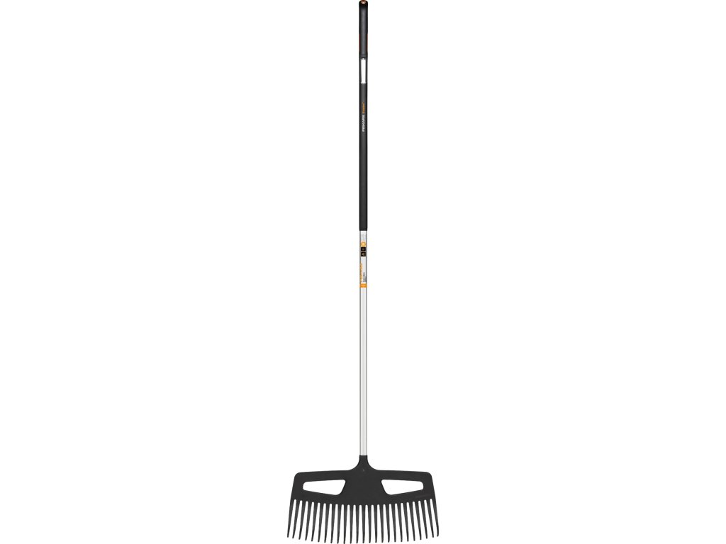 Široké hrábě s pružnými prsty pro efektivní hrabání listí na velkých plochách. Odolná a současně lehká násada z tvrzeného hliníku pro snadný úklid zahrady bez zbytečné námahy. Násada s komfortním povrchem z materiálu Softgrip™ v místě úchopu. Praktický otvor pro skladování