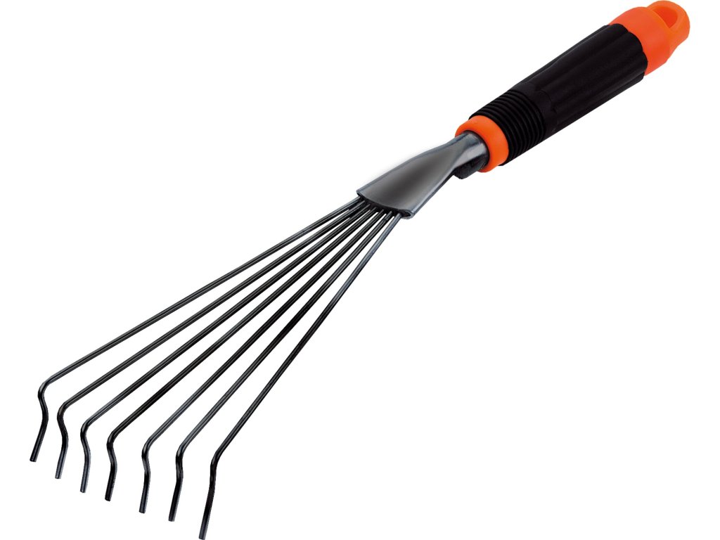 Švédské hrábě malé s kulatými trny pro drobné práce na zahradě. Masivní plastová rukojeť se závitem, který umožňuje našroubování dlouhé kovové násady. Násadu je možné dokoupit a využít pro celou řadu ručního nářadí Stocker (772018).