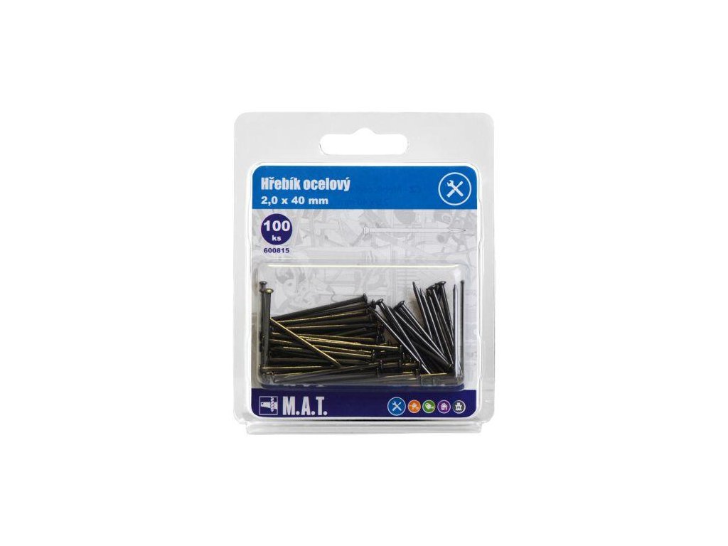 rozměry (D x pr.): 40 x 2,0 mm materiál: ocel 100 ks Ocelový hřebík 40 x 2,0 mm má všestranné použití, třeba při stavbě střech, zahradních domků či renovaci podlah, hodí se ale i na pověšení malého obrázku do běžné zdi.Doplňkové parametry