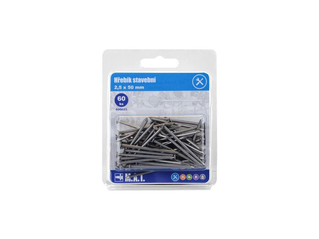 rozměry (D x pr.): 50 x 2,5 mm 60 ks Stavební hřebíky jsou nejběžnějším druhem hřebíků a najdou uplatnění při výrobě střešních konstrukcí, i v rámci drobných tesařských prací.Doplňkové parametry