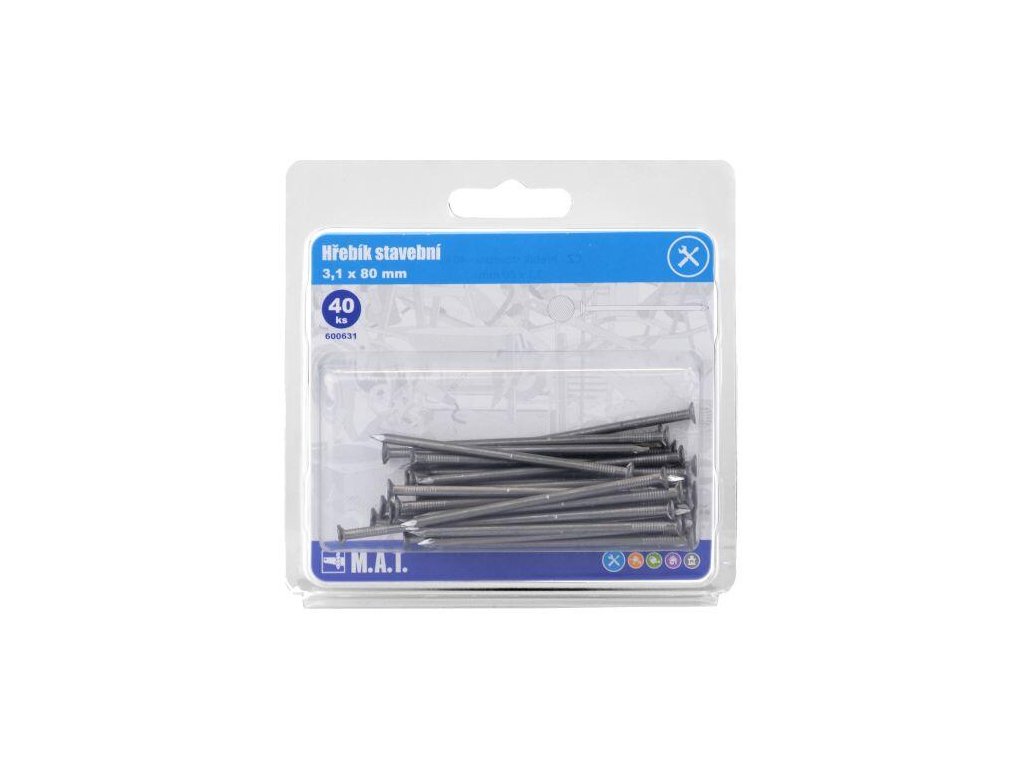 rozměry (D x pr.): 80 x 3,1 mm 40 ks Stavební hřebíky jsou nejběžnějším druhem hřebíků a najdou uplatnění při výrobě střešních konstrukcí, i v rámci drobných tesařských prací.Doplňkové parametry