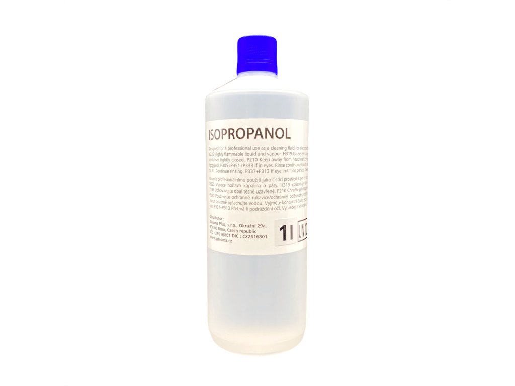 IPA je 99,9% isopropylalkoholu a neobsahuje žádné přidané barviva nebo vonné látky. Výsledkem je rychlé odpařování beze zbytků a nezanechává žádné nepříjemné zápachy. Isopropanol je ideální pro řadu aplikací v domácnosti, lékařství, průmyslu nebo dílnách. ISOPROPANOL je jemný, univerzálně použitelný přípravek pro bezpečné odstraňování usazených nečistot a mastnoty. Vzhledem k jeho ambivalentnímu charakteru odstraňuje jak tuky a oleje, tak i ionizované nečistoty. Nenarušuje ošetřované materiály.Vhodné pro téměř všechny povrchové materiály. Čisticí prostředek na sklo, např. v automobilovém sektoru, použitelný i pro elektronická zařízení, jako jsou procesory CCD snímače chladiče GPU, mechanické konstrukční prvky a vybavení. K odstranění zbytků po pájení, tavidel, pájecí pasty, k čištění sítotiskových šablon. Mimořádně vhodný pro čištění hodin, přesných nástrojů a citlivých optických přístrojů.