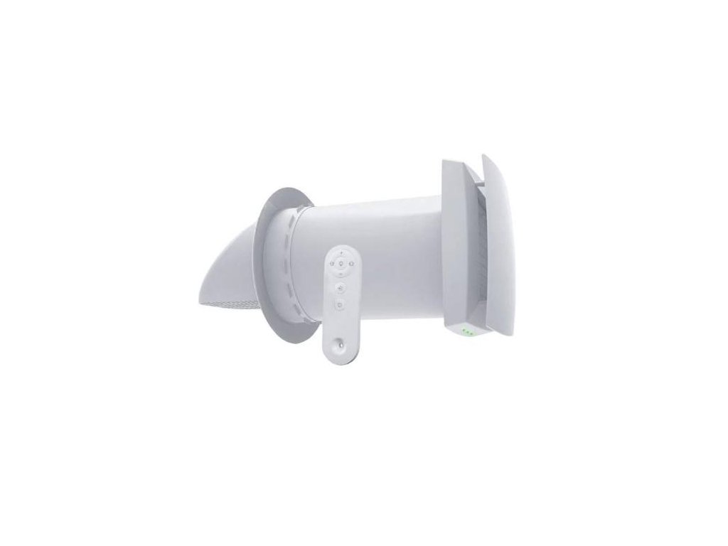 - INSTALACE:Do nejlépe do jádrovým vrtáním vyvrtaného otvoru se vsune venkovní část potrubí s hlavicí se silikonovým límcem tak, aby celý límec prošel otvorem a pohybem zpět se opřel o venkovní fasádu. Poté se venkovní díl vystředí a zajistí PU montážní pěnou. Po zatuhnutí se vloží část s tepelným výměníkem a filtry a opět upevní PU pěnou. Nakonec se upevní vnitřní jednotka na vnitřní stěnu a připojí se k el. síti.