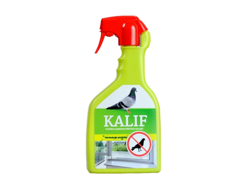 KALIF HOLUBI A PTÁCI - netoxický postřik k přímému použití v mechanickém rozprašovači, který zamezuje usedání holubů a jiných druhů ptáků jna nežádoucí venkovní místa a plochy.