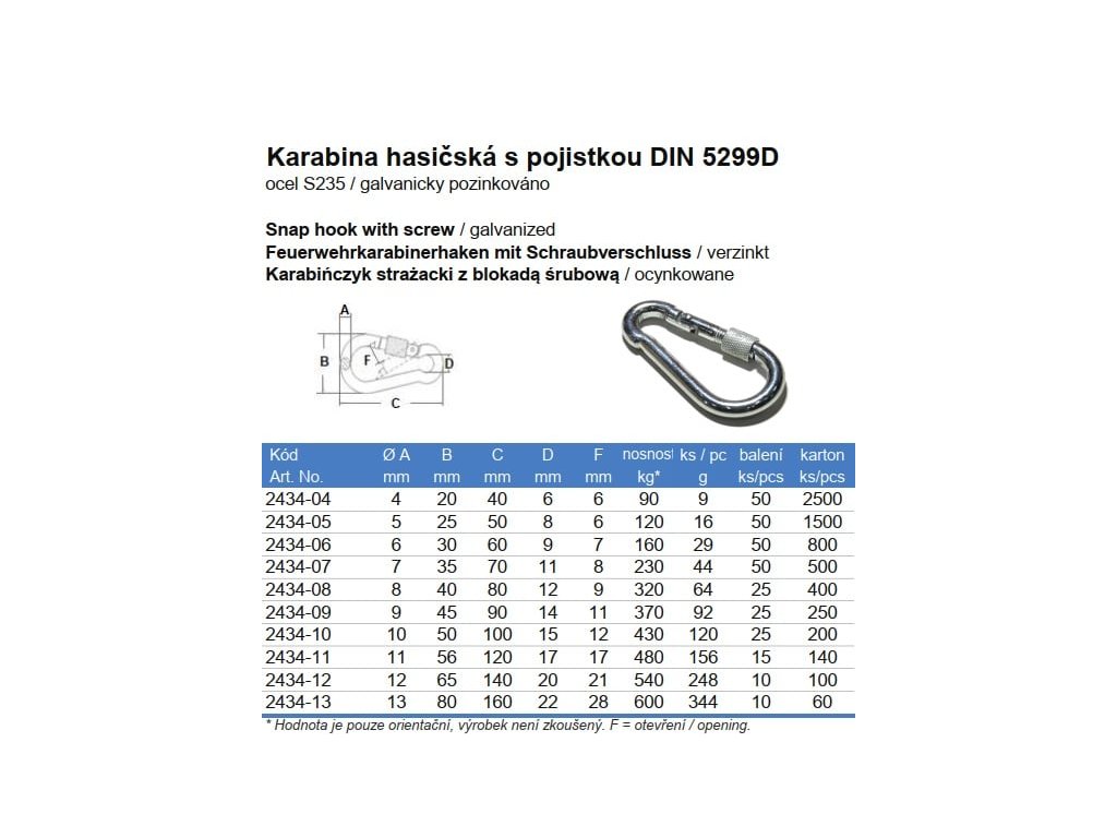 Karabina hasičská s pojistkou DIN 5299D