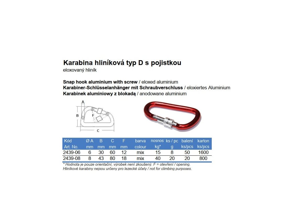Karabina hliníková typ D s pojistkou