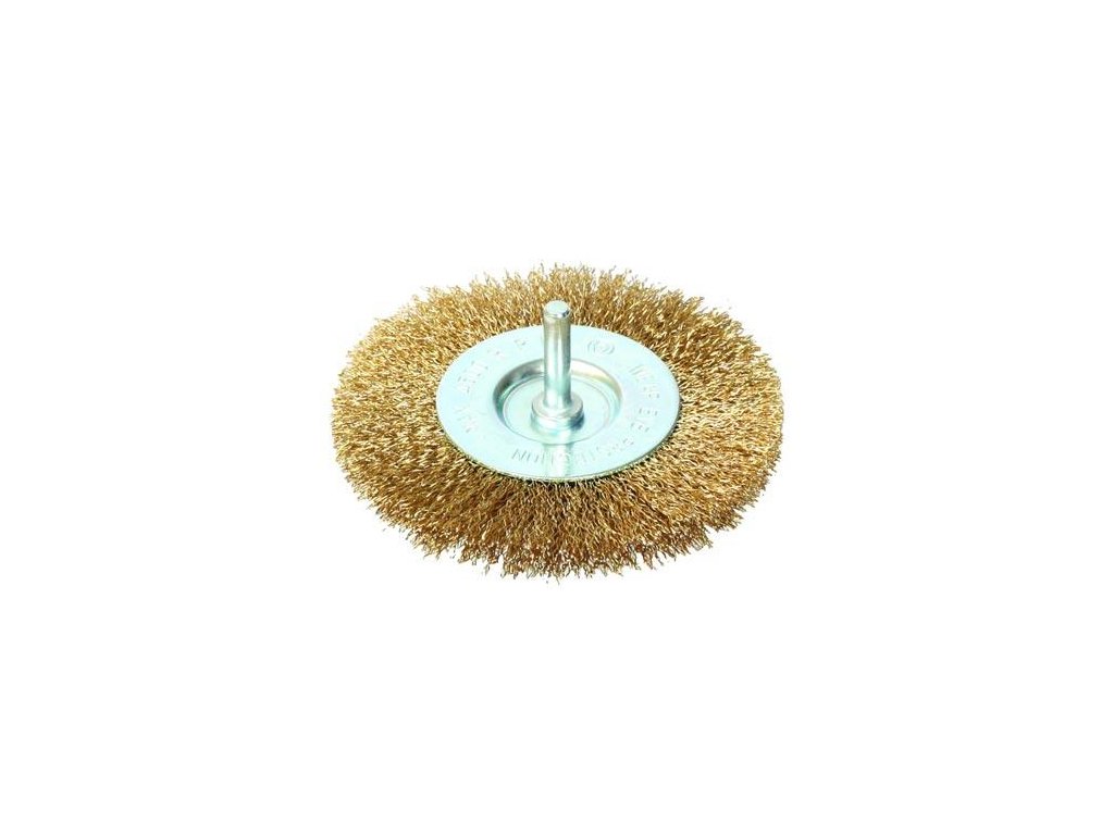 Rotační kartáč - okružní provedení : vlnitý drát 0,25 mm - pomosazený průměr: 50 mm stopka 6 x 27 mm materiál: pozinkované tělo kartáče počet drátů : 936 délka drátu : 12,5 mm max. přípustné otáčky: 4500 1/min balení : blistr s eurootvorem Kartáč je perfektní pro leštění, zdrsňování, odstranění rzi a otřepů.Doplňkové parametry