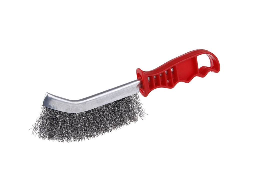 Ocelový kartáč - ruční, kovové tělo s plastovou ergonimicky tvarovanou rukojetí, vlnitý drát - pozinkovaný, počet drátů 1480, použití: k číštění železných kovů jako je ocel, litina, … .Doplňkové parametry
