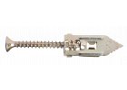 Dosedací upevnění pro trvalé ukotvení v dutých stěnách. Pozinkovaný kovový úchyt s metrickým šroubem.