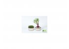 Plastový květináč ve tvaru číše v teracotové barvě.