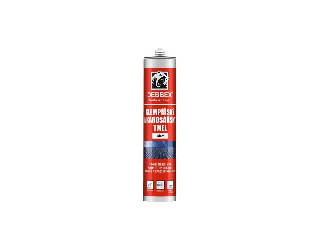 Pro tmelení o opravy klempířských prvků, jako jsou např. přechody střech, oplechování okolo komínů, atik, říms apod. Tmel je velmi dobře přilnavý k ocelovým plechům, eloxovanému hliníku, zdivu a dřevu. Na kovy nepůsobí korozivně. Jednosložkový těsnicí spárovací tmel, na bázi akrylové disperze. Tmelení a podtmelování parapetů a balkónových prahů. Dále určený pro tmelení a spárování ocelových dílů automobilů opatřených základním i krycím nátěrem nebo bez nátěru. Podtmelování karosářských dílů jako blatníky automobilů, autobusů, obytných přívěsů atd.Doplňkové parametry