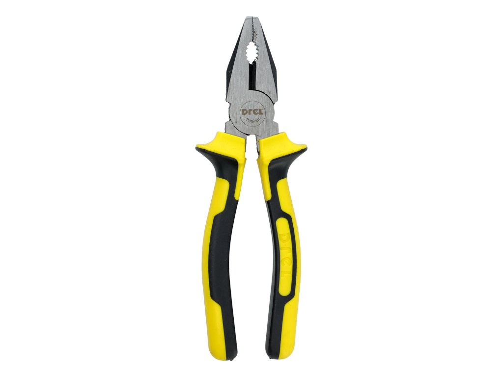Kleště kombi 200 mm, DREL. celková délka: 200 mm Kleště z kalené oceli. Povrchová úprava kleští chromovaná. Rukojeti z dvojitého materiálu pro vysoký komfort. Drážkované čelisti pro pevný úchop. Kleště určené k držení, ohýbání, stříhání.Doplňkové parametry