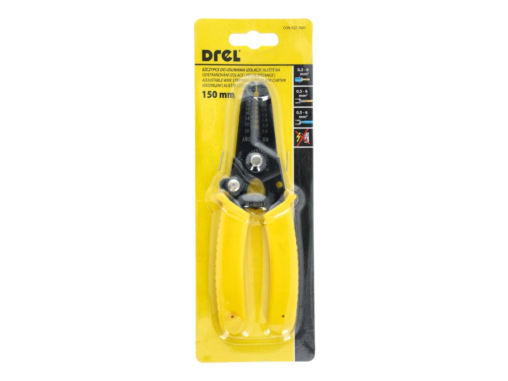 Kleště odizolovávací 0,6 - 2,6 mm DREL. Odizolovávací a štípací kleště s tvrzenými čelistmi. Měkčená rukojeť vhodná pro dlouhodobou práci.Doplňkové parametry