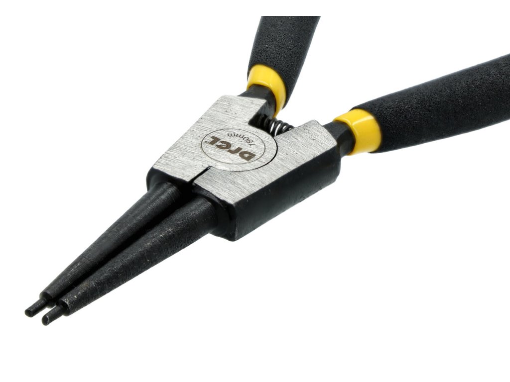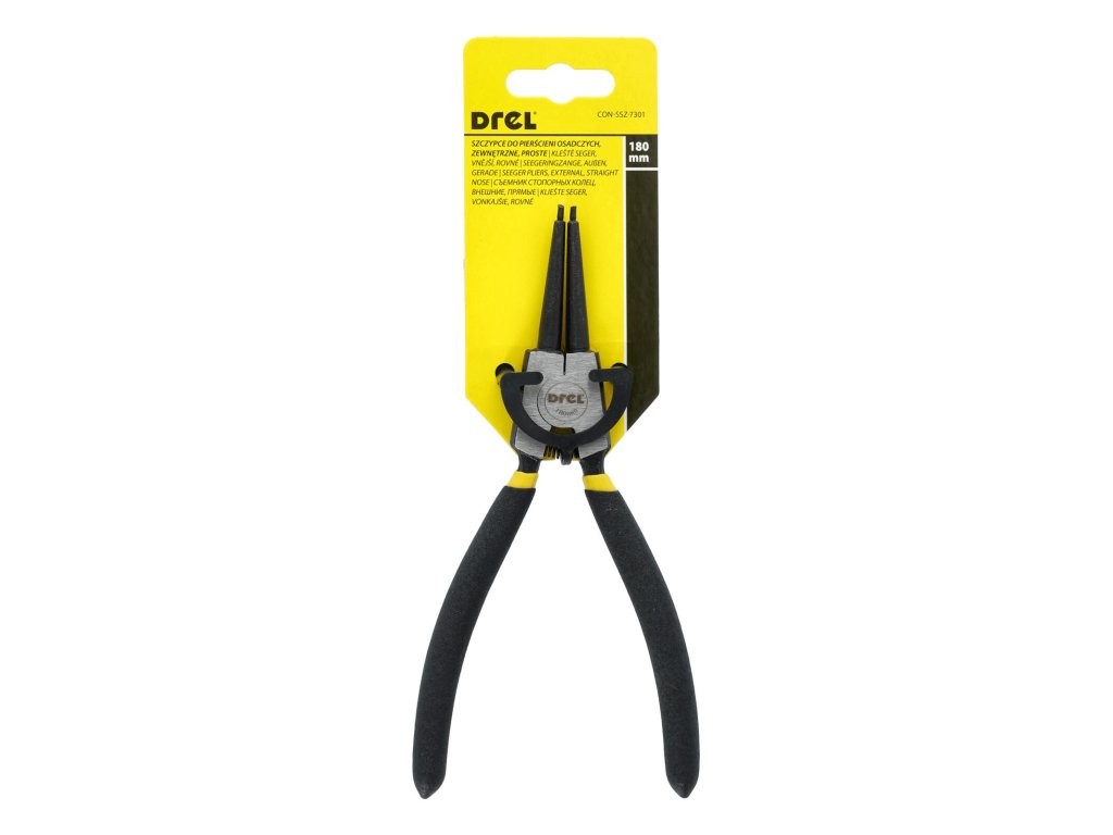 Kleště seger vnější 180 mm DREL. délka: 180 mm Kleště na vnější pojistné kroužky - vnější kroužky používáme na osách a hřídelích. Stisknutím se průměr kroužku zvětší a pak je možno tento kroužek nasadit nebo sejmout.Doplňkové parametry