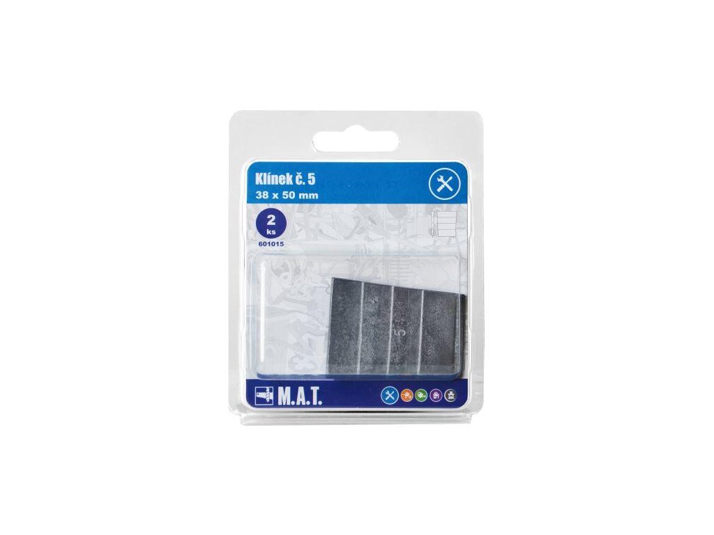 rozměry (Š x D): 38 x 50 mm 2 ks Klínek č.5 k zajištění upevnění různých druhů nářadí (sekery, kalače, kladiva, motyky apod.) na topůrkách či násadách.Doplňkové parametry