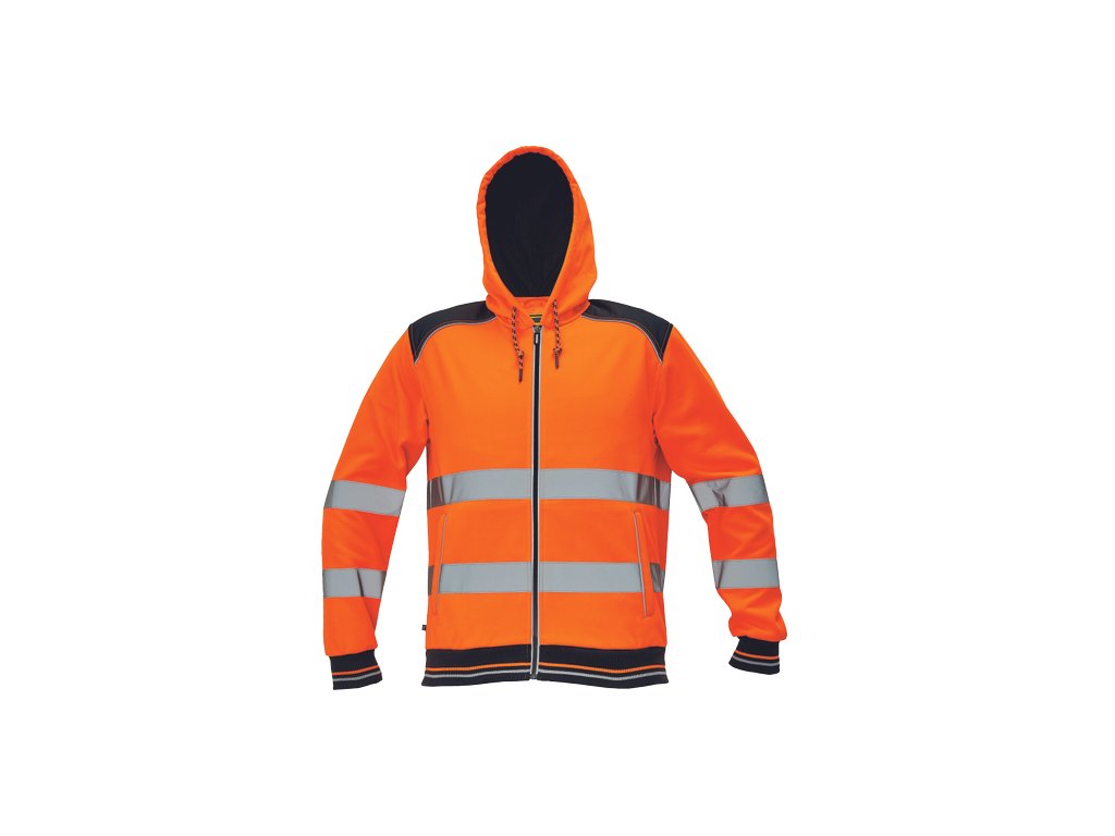 • celopropínací mikina s kapucí v HI-VIS provedení ze směsového úpletu polyesteru a bavlny • 2 našité reflexní pruhy po obvodu těla a rukávů • zevnitř nepočesaná • zesílená oblast ramen a loktů • reflexní paspulka lemující sedlo a lištové kapsy • dvojitá kapuce a dekorativního prošití • pružné náplety na rukávech a spodním obvoduDoplňkové parametry