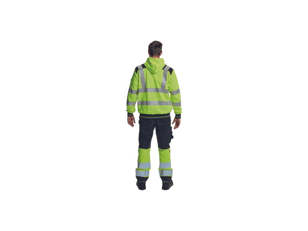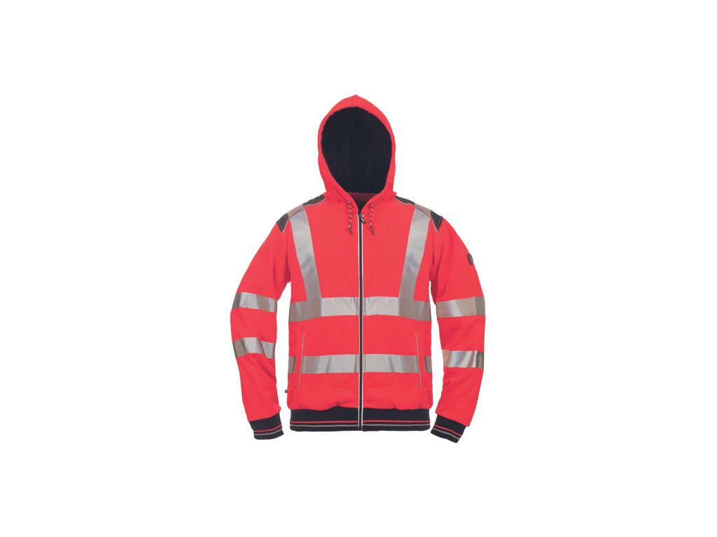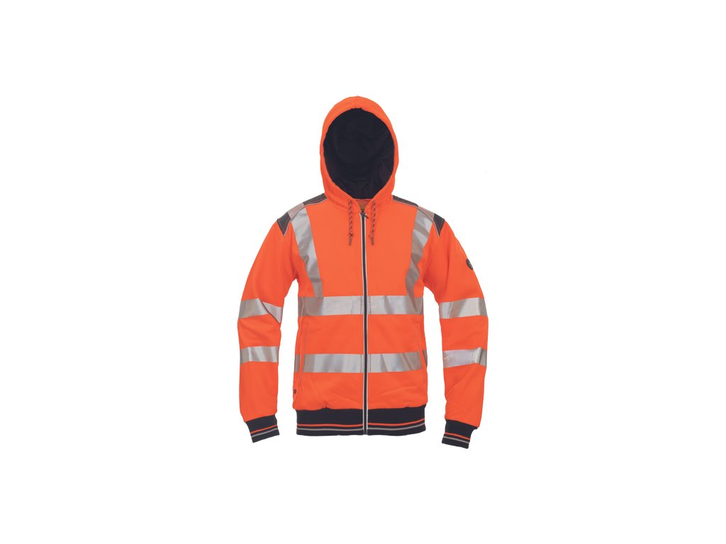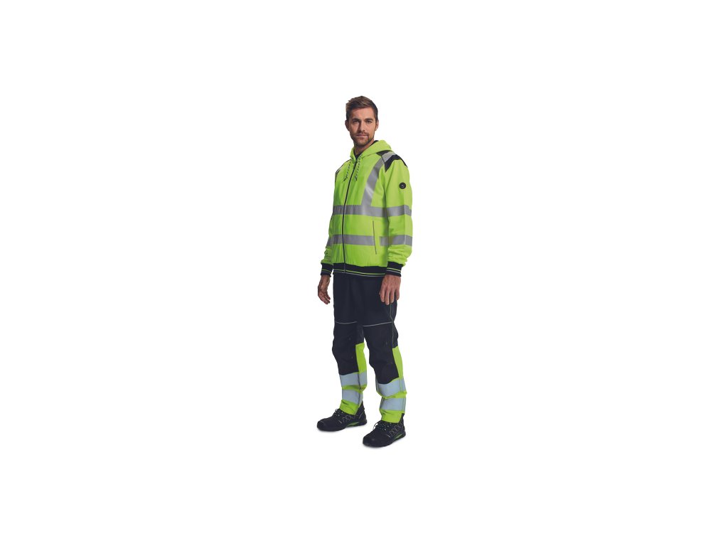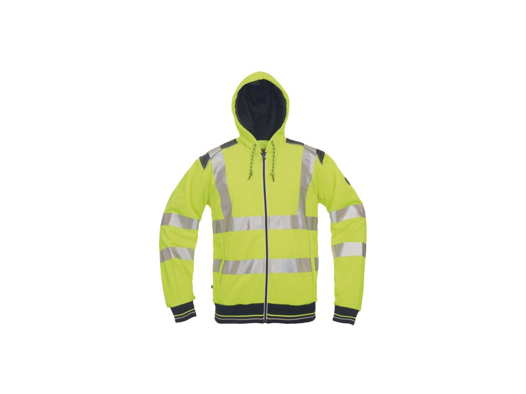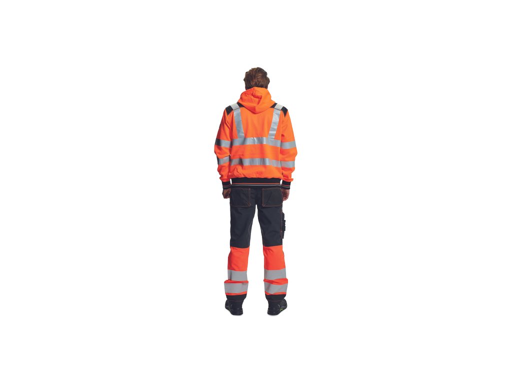 • HI-VIS celopropínací mikina s kapucí ze směsového úpletu polyesteru a bavlny • sedlo v kontrastní černé barvě lemované reflexní paspulkou • dvouvrstvá kapuce se stažením na šňůrku • 600D Oxford zesílená oblast ramen • tištěné 5 cm reflexní pruhy • 2 boční kapsy • elastické náplety na rukávech a v paseDoplňkové parametry