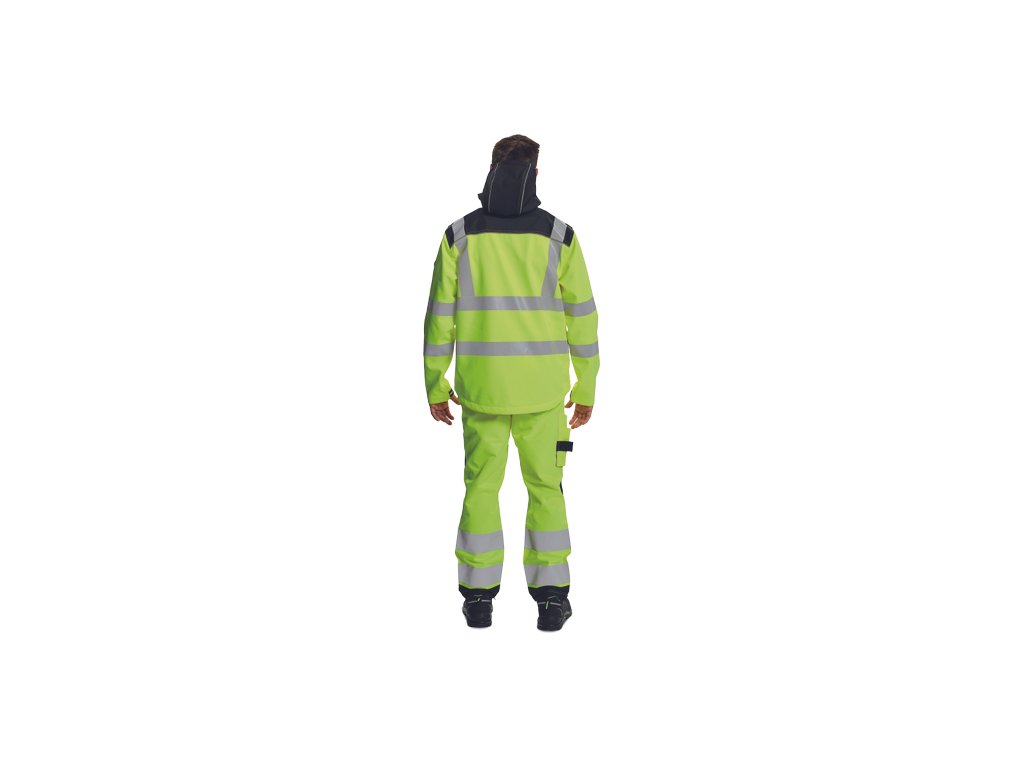 • HI-VIS softshellová bunda s kapucí • PU membrána zajišťuje voděodolnost a paropropustnost • sedlo v kontrastní černé barvě lemované reflexní paspulkou • 600D Oxford zesílená oblast ramen • tištěné 5 cm reflexní pruhy • 2 boční kapsy, 1 náprsní kapsa • 2 vnitřní kapsy • nastavitelná šíře rukávů a obvodu pasuDoplňkové parametry