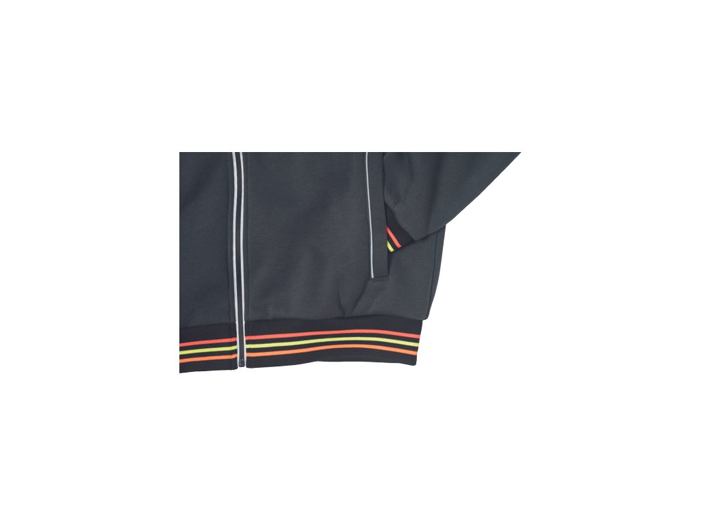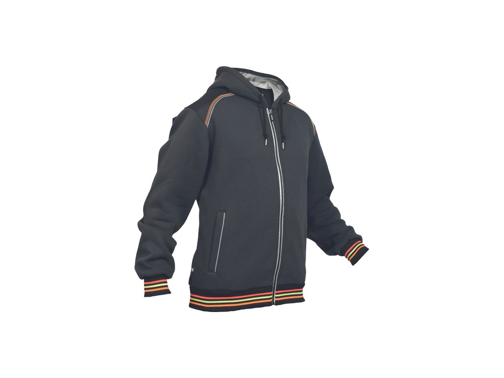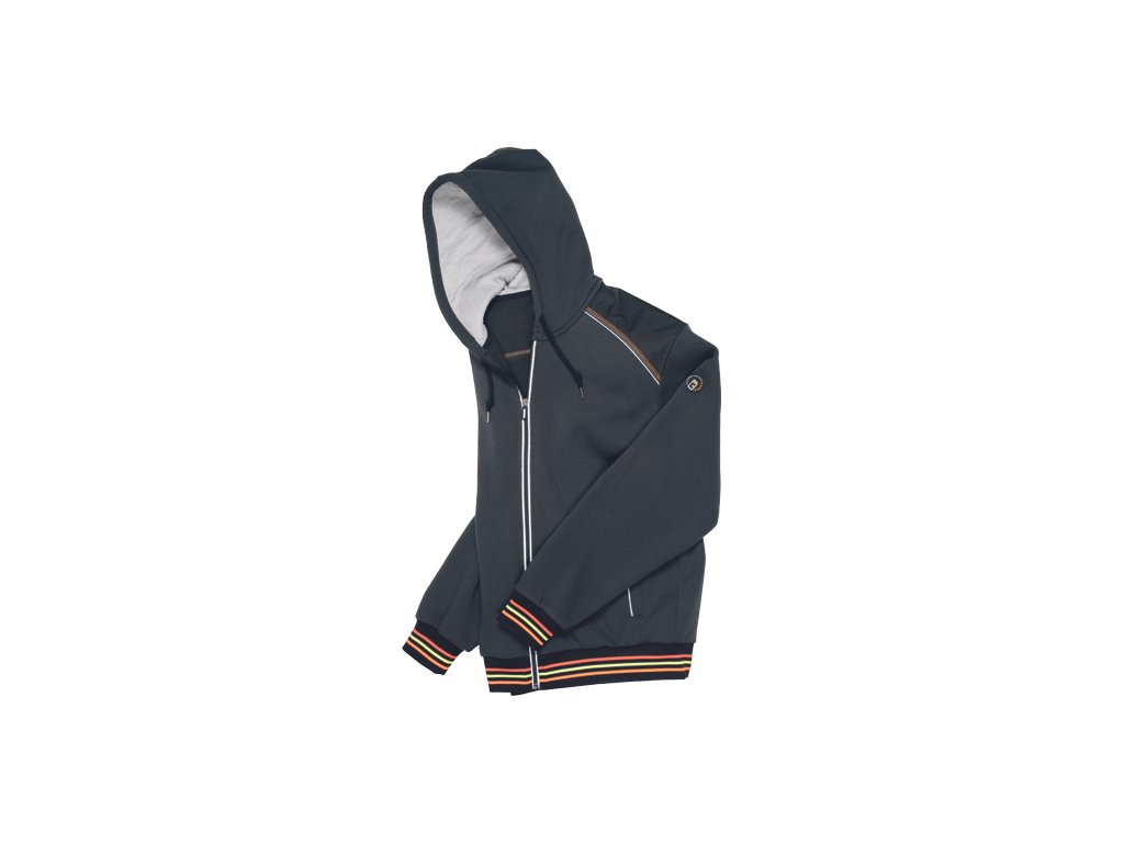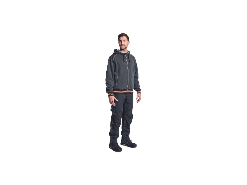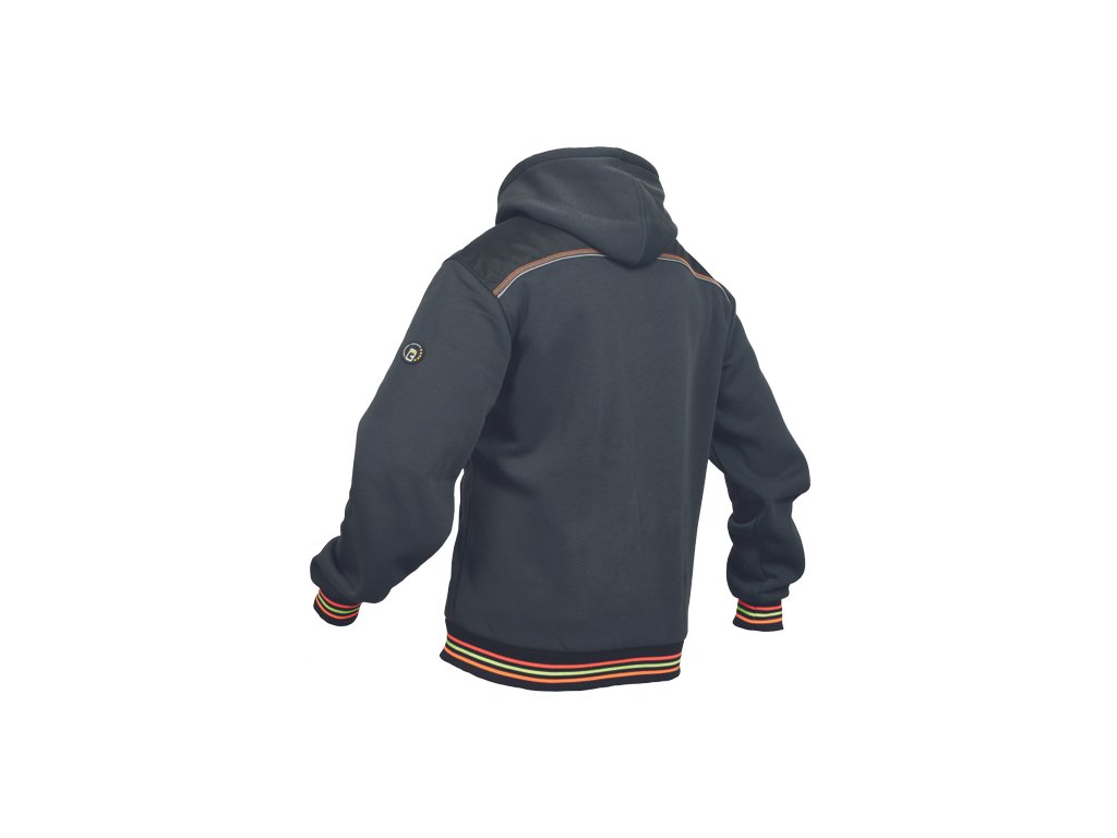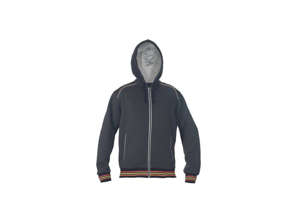 • pánská celopropínací mikina s kapucí ze směsového úpletu bavlny a polyesteru zevnitř nepočesaná • zesílená oblast ramen a loktů • reflexní paspulka lemující sedlo a lištové kapsy • dvojitá kapuce s nastavením obvodu pomocí šňůrky • trojité dekorativní prošití • pružné náplety na rukávech a spodním obvoduDoplňkové parametry