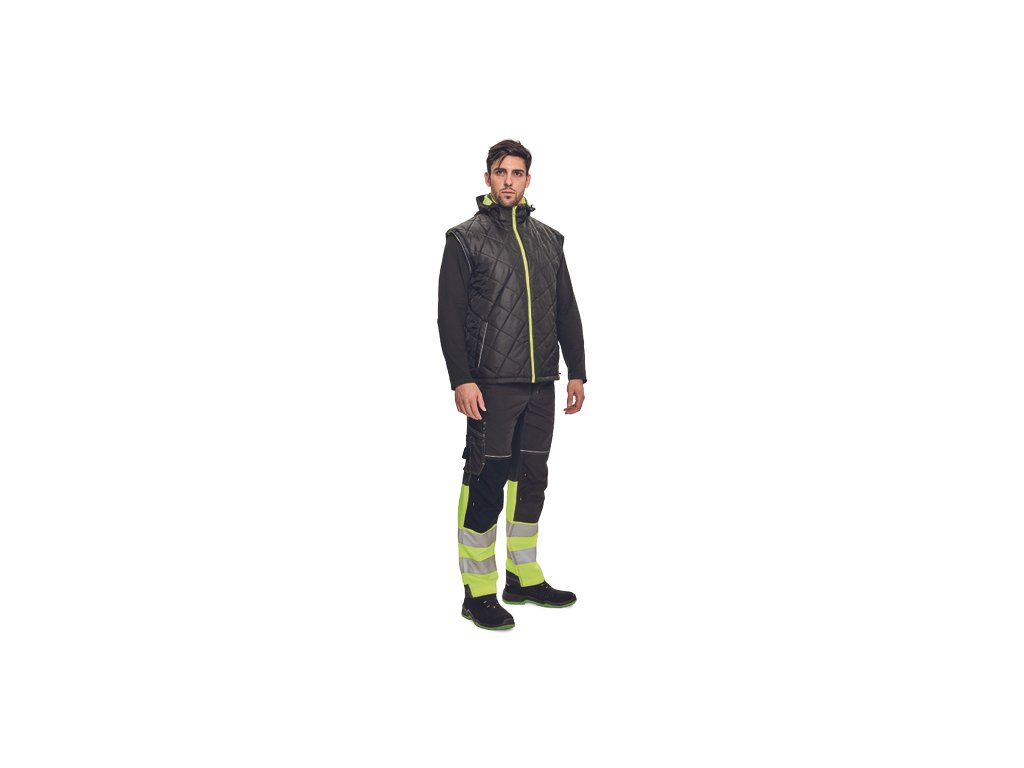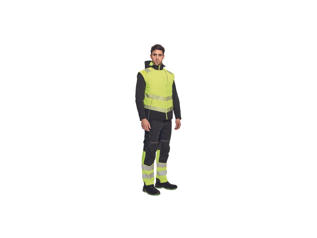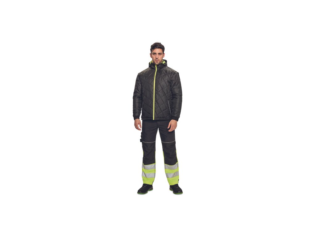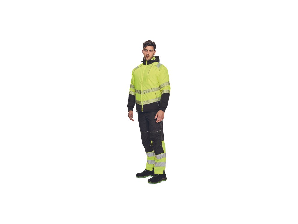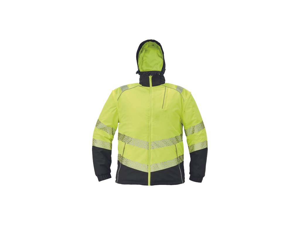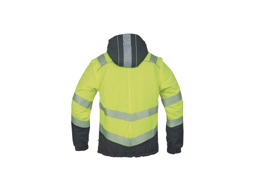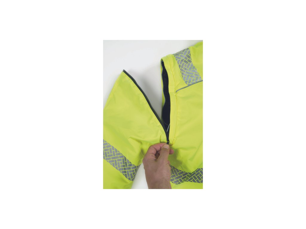 • pánská oboustranná zateplená HI-VIS bunda 4 v 1 s odepínacími rukávy a kapucí • TPU membrána, voděodolná a prodyšná • segmentované reflexními pruhy a reflexní paspulky • 2 postranní kapsy na zip • 1 náprsní kapsa na zip • nastavitelná šíře spodního obvodu pomocí stahovací šňůrky • zip krytý légou • obrácená verze v černé barvě s kontrastními reflexními paspulkami • EN 20471 (třída 3) pro velikosti M-5XL • EN 20471 (třída 2) pro velikosti XS-S.Doplňkové parametry