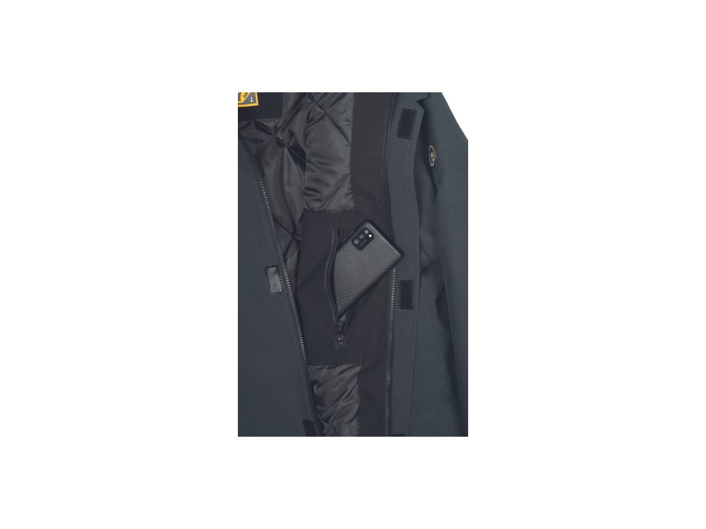 • pánská zateplená zimní bunda s odepínací kapucí • TPU membrána • prodloužený zadní díl • Oxford 600D zesílená část v oblasti ramen • 1 náprsní kapsa, 2 postranní lištové kapsy, 2 uzavíratelné vnitřní kapsy • nastavitelná šíře spodního obvodu • reflexní paspulka lemující sedlo a boční kapsy • dekorativní prošití • možnost strojového vyšíváníDoplňkové parametry