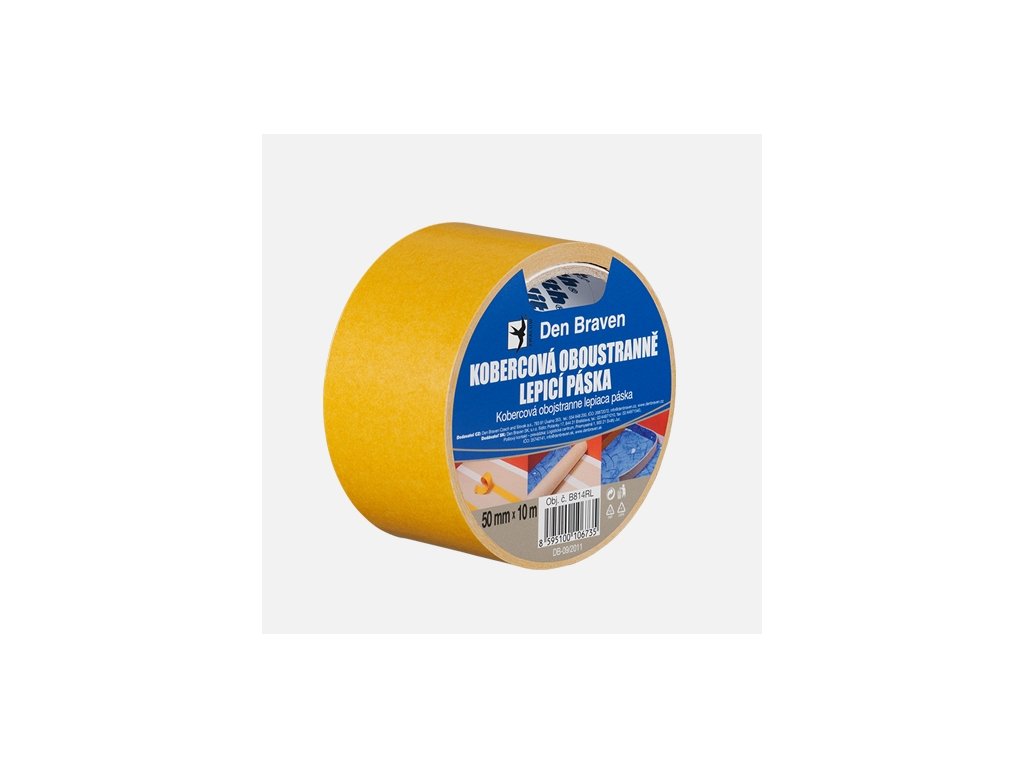 Pro lepení a upevňování koberců zvláště na nesavé podklady, jako je např. dlažba, linoleum, umakart apod. Vyniká silnou přilnavostí a lepivostí k většině podkladových materiálů. Základ pásky je tvořen polypropylenovým nosičem s oboustranným nánosem syntetického pryžového lepidla. Tloušťka pásky: 0,11 mm, pevnost v tahu: 50 N / 25 mm, přilnavost na kov: 20 N / 25 mm. Tepelná odolnost pásky -20°C až +70°C.Doplňkové parametry