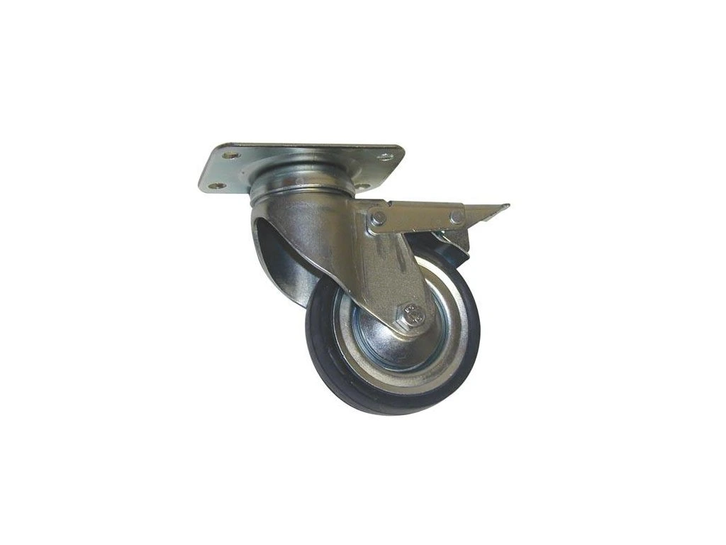 průměr: 100 mm nosnost: 60 kg Otočné kolečko s brzdou, které je určeno pro nerovné a tvrdé povrchy, často montováno u kontejnerů na tříděný odpad.Doplňkové parametry