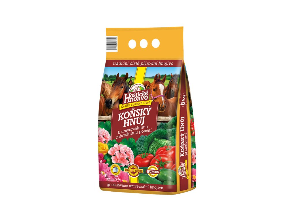 Koňský hnůj je čiště přírodní organické hnojivo. Obsahuje organické látky a základní živiny ( N, P, K, Ca a Mg ), ale i stopové prvky např. Fe, Mn, Mo, Zn, Cu. Koňský hnůj je granulovaný ( peletovaný ) produkt, přičemž granule při styku s vodou bobtnají, a tak dochází k postupnému uvolňování živin. Hnůj přirozeně zvyšuje podíl humusu v půdě a přispívá k vyšší úrodnosti.
