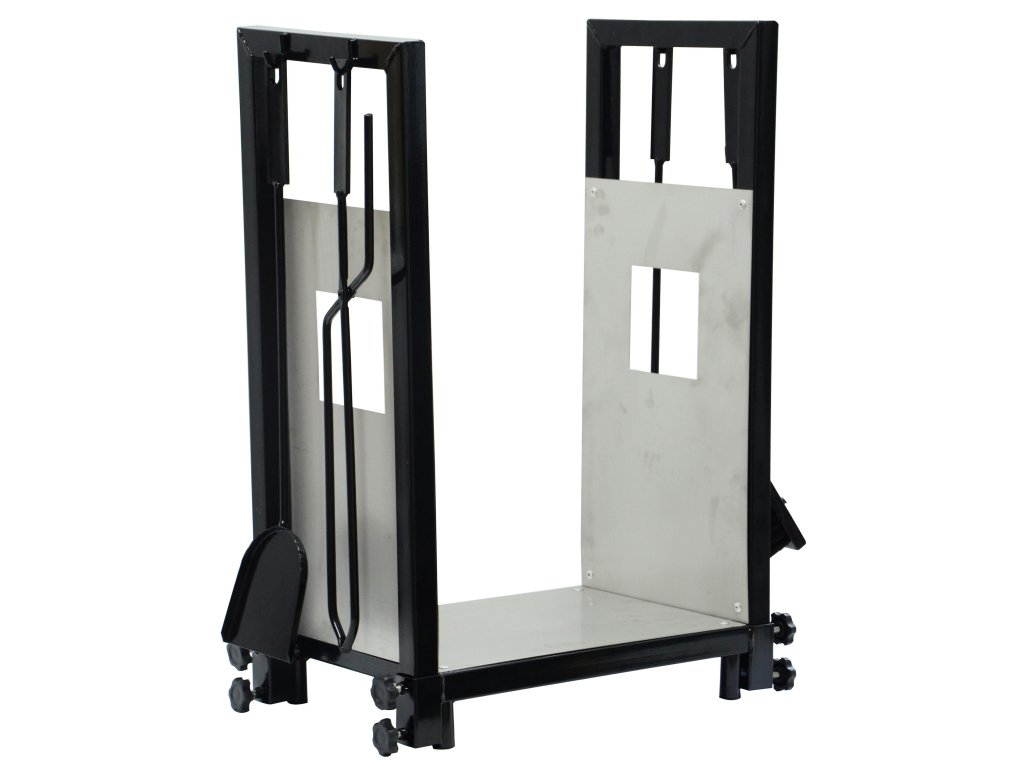 výška: 62cm, šířka 42cm, hloubka 25cm, materiál: nerez a ocel Krbové nářadí s košem na dřevo, který je praktickým pomocníkem pro přenos a uskladnění dřeva u krbu. Nářadí se skládá z pohrabáče pro manipulaci se žhavým popelem a pro práci s otevřeným ohněm, smetáčku a lopatky na smetení popela či kousků dřeva a klestí.Doplňkové parametry