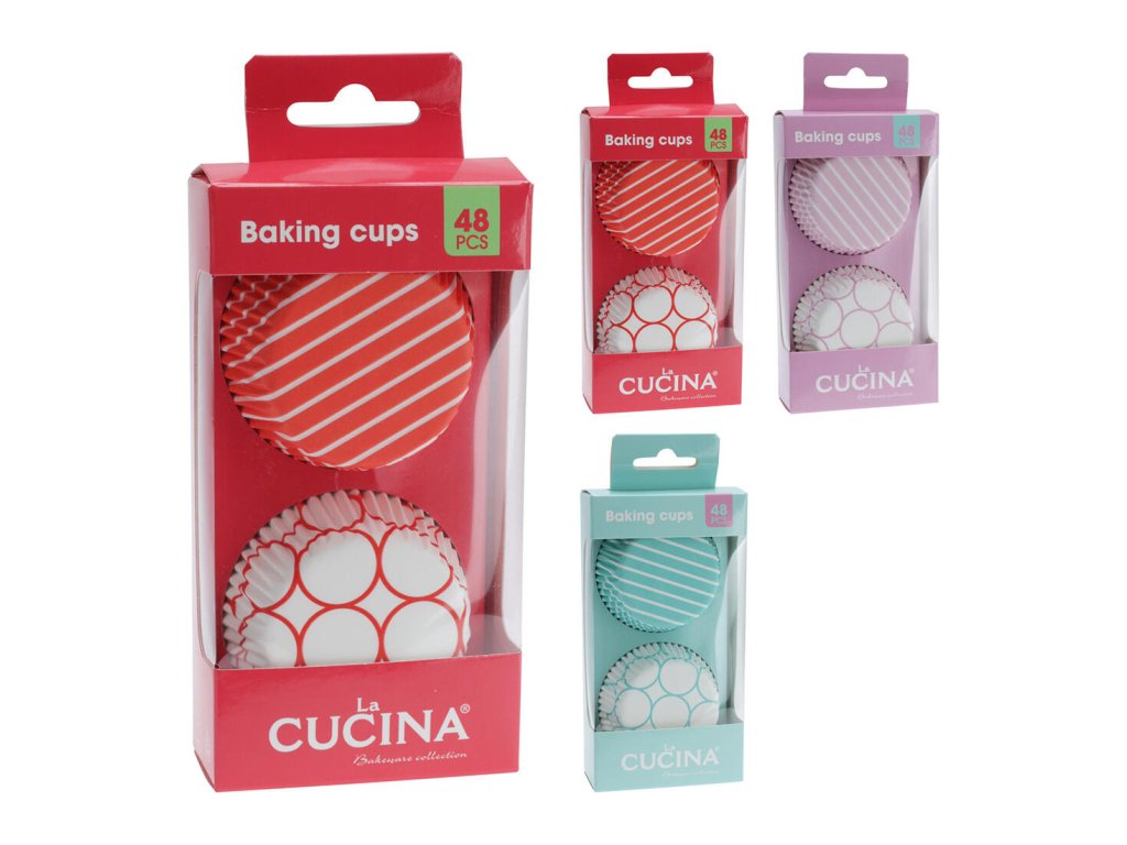 Košíček cukrářský 7 cm, papírový, mix barev a motivů (48 ks). materiál: pečící papír mix barev a dekorů: růžová, mint, červená balení: 48 ks Cukrářský košíček je perfektní pro pečení i servírování nejen sladkých pokrmů, ale také slaných dobrot. Dá se využít na pečené i nepečené dezerty, především je ale určený pro cukroví, čokoládové bonbóny, pralinky, mini muffinky a další dobroty.Doplňkové parametry