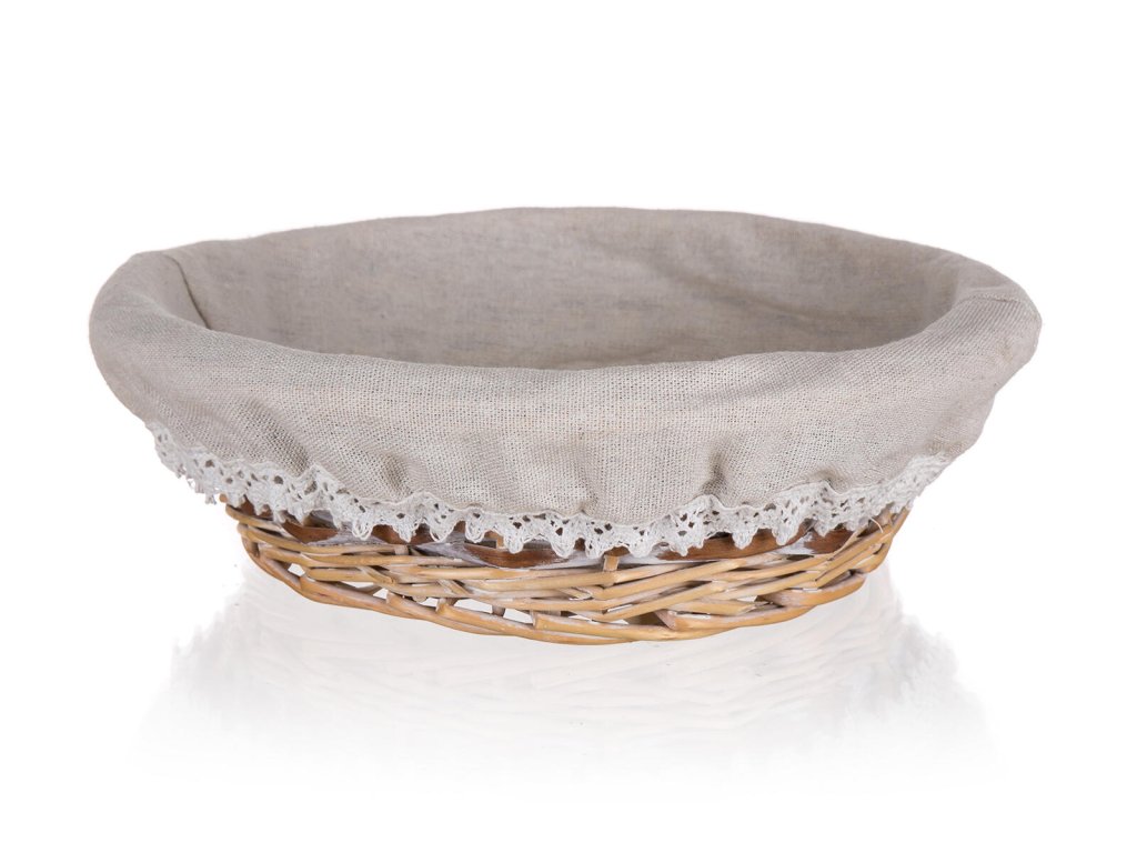 Košík DUO kulatý, 26 x 8 cm, proutěný. průměr: 26 cm výška: 8 cm materiál: proutí materiál: hnědo - bílá krajkový lem Proutěný košík DUO e vhodný pouze pro dekorativní účely. Dodáván v hnědobílé barvě, uvnitř přírodní látka s krajkovým lemem. UPOZORNĚNÍ: pouze pro dekorativní účelyDoplňkové parametry