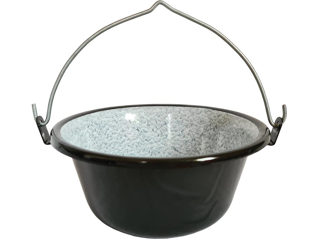 Kotlík servírovací 0,8 l, smalt ČER. objem: 0,8 l materiál: smalt barva: černá - kotlík je vyroben ze smaltovaného ocelového plechu - je určený k servírování guláše, lze použít ale i pro servírování polévek či omáček - servírovací kotlík je ideální pro Vaši zahradní akci nebo do restaurace - možno použít samostatně nebo zavěšený na stojánku (do kterého lze vložit čajovou svíčku), stojánek je potřeba dokoupit samostatně - zkratka č. 716718 - snadná údržba - k mytí kotlíku použijte houbičku a prostředek na mytí nádobí Naservírujte Váš chatařský guláš přátelům nebo zákazníkům stylově. Díky tomuto servírovacímu gulášovému kotlíku docílíte výjimečné atmosféry.Doplňkové parametry