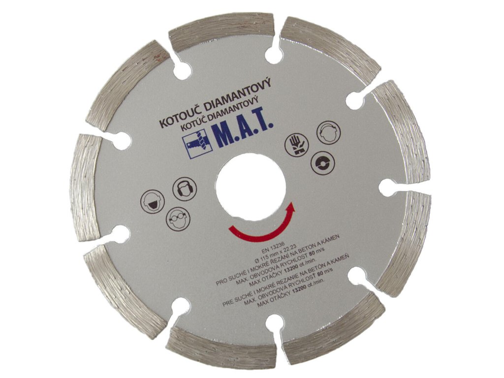 průměr kotouče: 150 mm průměr otvoru: 22,2 mm (součástí balení je redukční kroužek z 22,2 na 20 mm) pevné uchycení diamantových segmentů k nosnému disku kotouče Diamantový kotouč představuje ideální nástroj pro příčné i podélné dělení různých stavebních materiálů, jakými jsou beton, cihla, zdivo či kámen.Doplňkové parametry