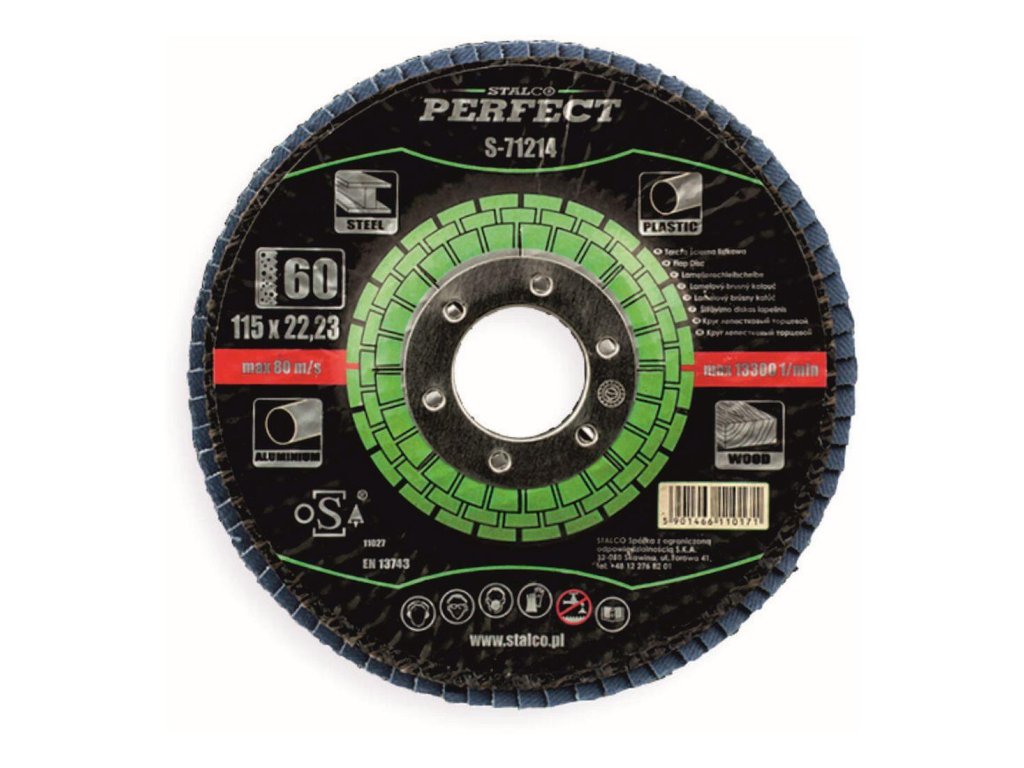 Kotouč lamelový 115 x 22,23 mm zr. 60 korundový STALCO Rozměr: 115 x 22,23 mm Hrubost: 60 Kotouč je vhodný pro použití na ocel i nerez.Doplňkové parametry